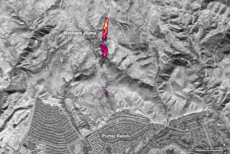 In addition to its size, the composition of a leak can also significantly affect detection. Drilled wells can often release nonmethane gases like ethane and propane. Often termed “wet-gas,” these nonmethane compounds are more sensitive to infrared light than methane. Therefore, a leak rich in these compounds will “look” brighter than a similar leak that contains only methane. Such situations commonly occur in regions where significant oil is also extracted along with gas.